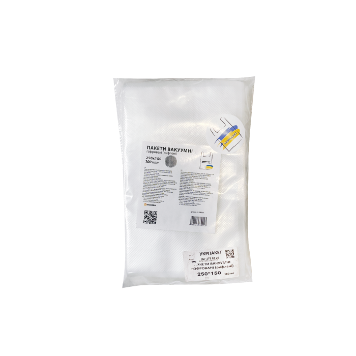 Наші гофровані вакуумні пакети - ідеальний спосіб зберегти свіжість ваших продуктів з неймовірним комфортом. Такі пакети використовують для вакууматорів. Інтегрована рифлена структура забезпечує максимальну ефективність вакуумного ущільнення, тримаючи продукти свіжими і смачними, а також захистить їх від зовнішнього впливу. Купити Гофровані (рифлені) вакуумні пакети 250 х 150 "Укрпакет" 100 шт в EUPAKOVKA означає переконатися в якісному та тривалому функціонуванні з гарантійним терміном. Замовте вже сьогодні і переконайтеся у всіх перевагах вакуумної упаковки! \rМи надаємо: