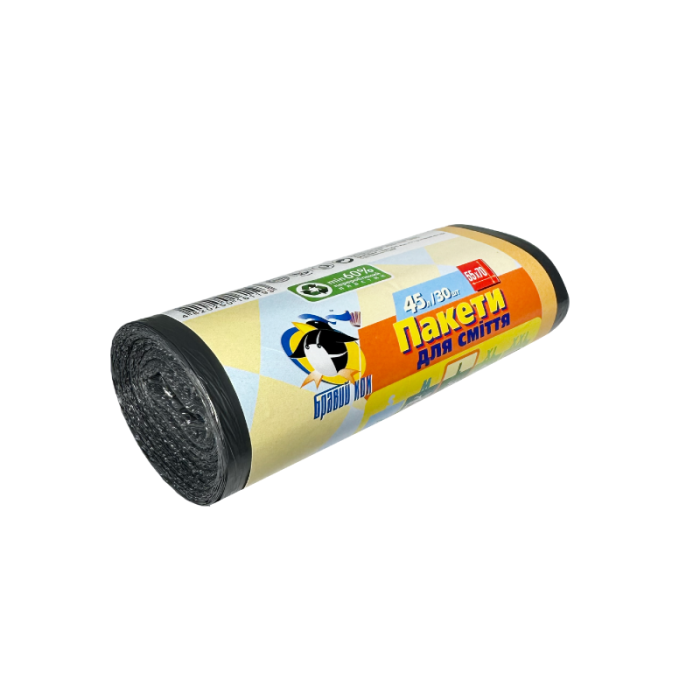 Завітайте до нашого інтернет-магазину і відкрийте для себе широкий асортимент пакетів для сміття, які ми маємо в наявності. Наші пакети для сміття створені для забезпечення максимальної зручності та ефективності при зборі та видаленні відходів. Ми пропонуємо пакети для сміття різних розмірів, щоб вони відповідали вашим потребам – від малих домогосподарств до великих підприємств. Купити Пакети для сміття Бравий Кок чорні з ручками рул. 45л/30шт в EUPAKOVKA означає переконатися в якісному та тривалому функціонуванні з гарантійним терміном. Замовте вже сьогодні і переконайтеся у всіх перевагах наших пакетів!