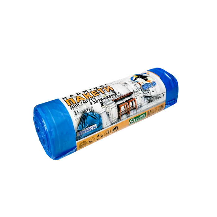 Завітайте до нашого інтернет-магазину і відкрийте для себе широкий асортимент пакетів для сміття, які ми маємо в наявності. Наші пакети для сміття створені для забезпечення максимальної зручності та ефективності при зборі та видаленні відходів. Ми пропонуємо пакети для сміття різних розмірів, щоб вони відповідали вашим потребам – від малих домогосподарств до великих підприємств. Купити Пакети для сміття Бравий Кок сині з затяжкою рул. 35л/15шт в EUPAKOVKA означає переконатися в якісному та тривалому функціонуванні з гарантійним терміном. Замовте вже сьогодні і переконайтеся у всіх перевагах наших пакетів!