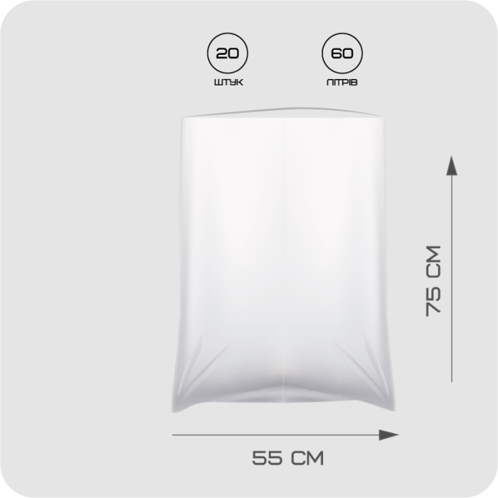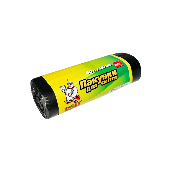 Наші пакети для сміття виготовлені з якісного поліетилену, які використовуються для сміттєвих баків і контейнерів ємністю від 30 до 120 літрів. Мають високу міцність і вантажопідйомність. Ідеально підходять для використання на кухнях барів та ресторанів, а також на візках прибиральниць у торгових та офісних центрах та ін. Купити Пакети для сміття Козак чорні рул. 60л/20шт в EUPAKOVKA означає переконатися в якісному та тривалому функціонуванні з гарантійним терміном. Замовте вже сьогодні і переконайтеся у всіх перевагах наших пакетів!