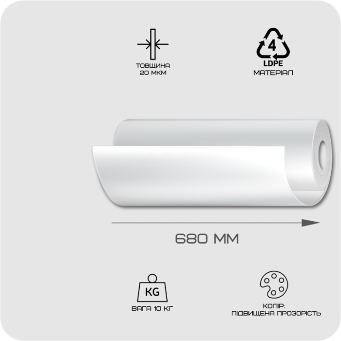 Наш поліетиленовий рукав – ідеальний вибір для упаковки товарів будь-якого розміру та форми. Він забезпечує максимальну гнучкість упаковки та дозволяє створювати індивідуальні упаковки під ваші потреби. Ця міцна та витривала плівка надійно захищає ваші товари від вологи, пилу та пошкоджень. Купити Плівку поліетиленову рукав (580 х 2+(50 х 4)) х 20 підвищенної прозорості для хімчистки 10 кг в EUPAKOVKA означає переконатися в якісному та тривалому функціонуванні з гарантійним терміном. Зробіть замовлення вже сьогодні і отримайте високоякісну поліетиленову плівку за вигідною ціною!